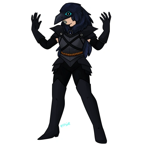 When the party first meet The Raven in Ep. 20: Petals to the Metal - Chapter Three, she is wearing an outfit of black leather, a full-face Raven mask, and at her waist, the Gaia Sash (which honestly kind of clashes with the black leather). She has a thorny vine whip, called, apparently, Thorn Whip.